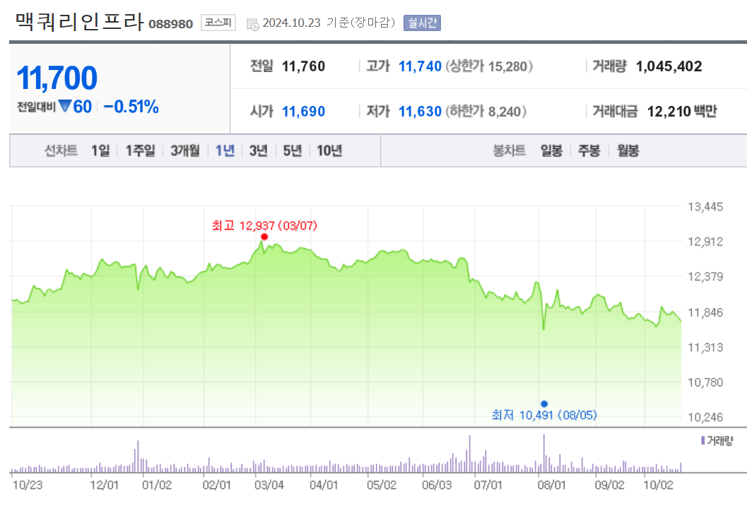 맥쿼리인프라 주가 정보