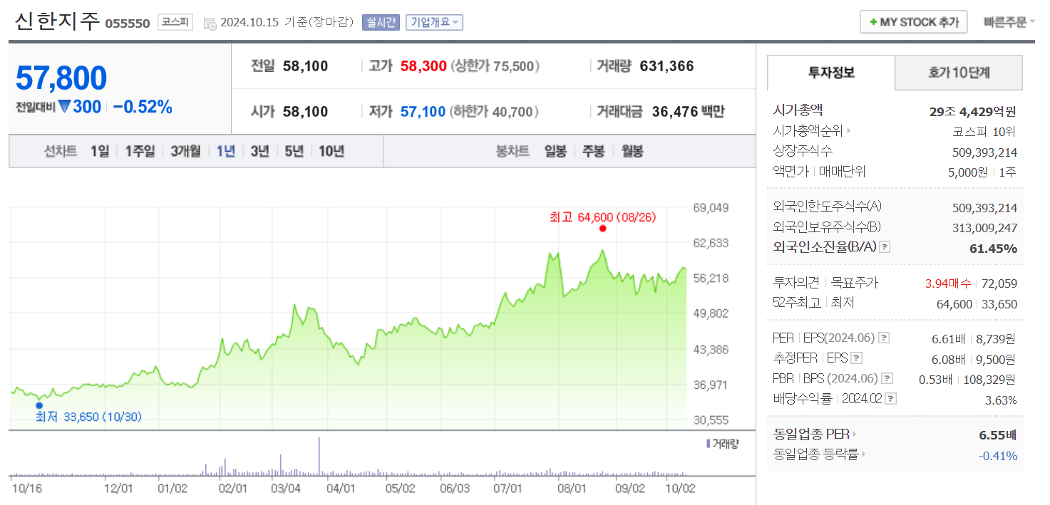 신한지주 주가 정보