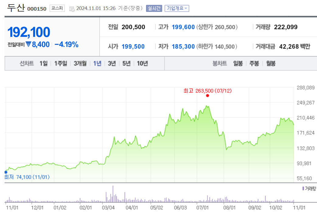 두산 주가 정보